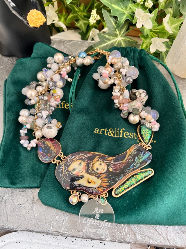 art&lifestyles. 【憧れの眼差し】 天然石とアミアミビーズ♡♡ 再販予定無しのデザインです♡♡ こちらは、山梨県産水晶、ガーデンクォーツ、アラシャン、チェコガラスなど♡♡ サージカルステンレスチェーン約50cm ブレスレットはおまけです♡♡ 内径約15cm.マグネット式♡♡ 〚¥8800〛 ✄-——————‐✄ art&lifestyles. 美術作家/輸入ビンテージアンティークバイヤー オーダー製作は現在× webstoreBASE店 R.8.2.22→祝10周年!!!感謝。 #BASEec #ネットショップBASE ✄-——————‐✄ 常設委託作家様♡ ①meruchan.handmade Instagram:meruchan.handmade.bonheur ② スマイル☺ギャラリー Instagram:lihuilaichuan ③ whiteclover Instagram:shopwhiteclover ④ あいにー 好きを形に。 Instagram:atelier_aini ⑤ ミヤマリア Instagram:gymnaster_mom ⑥ ⑦cocoirono Instagram:cocoirono ⑧ ⑨SUNAO Instagram:a_______sunao ⑩HOYAcoffee Instagram:hoyacoffee.kobe ⑪SOS Instagram:selfishonesoul ⑫Hiiroの色 Instagram:hiiro_no_iro_ ⑬メリー.ジェイ.メイド Instagram:mary_j_made ⑭ ⑮colorfulcolorful _colorful_colorful ⑯パレット handmade_palette2018 - ̗̀☾⋆ ̖́息子-Jayden ピアス、イヤリング - ̗̀☾⋆ 娘-Juno レジン、ピアス、イヤリング ✄-——————‐✄ #美術#芸術美術館アクセサリーピアスイヤリング天然石オルゴナイト収集癖癖強めヴィンテージvintageアメリカ直輸入フランス輸入夏芸者個性派魔法魔女っ子製作活動阿智村飯田市下伊那郡委託販売委託作家様在籍18作家工房 ライブ販売会