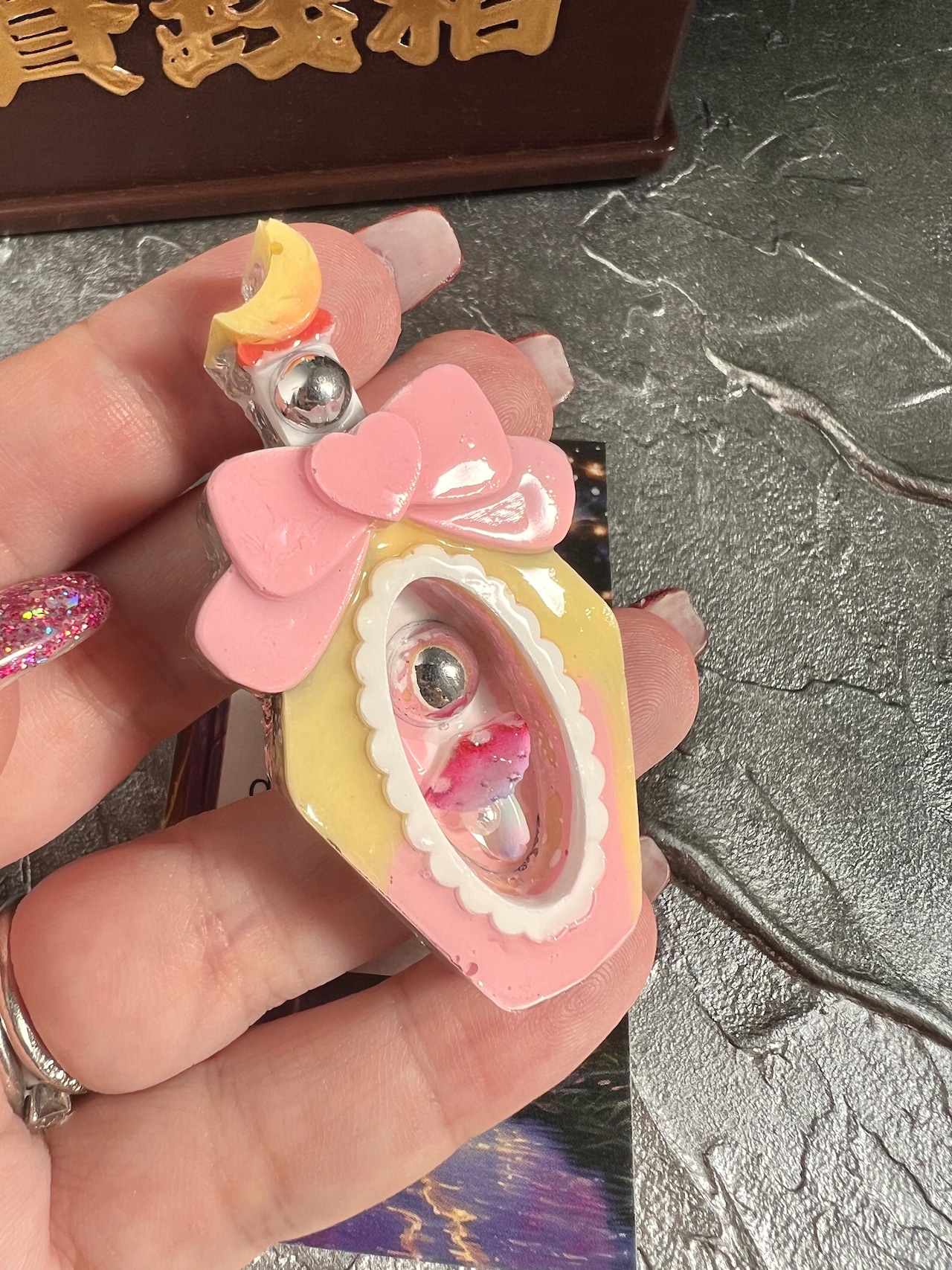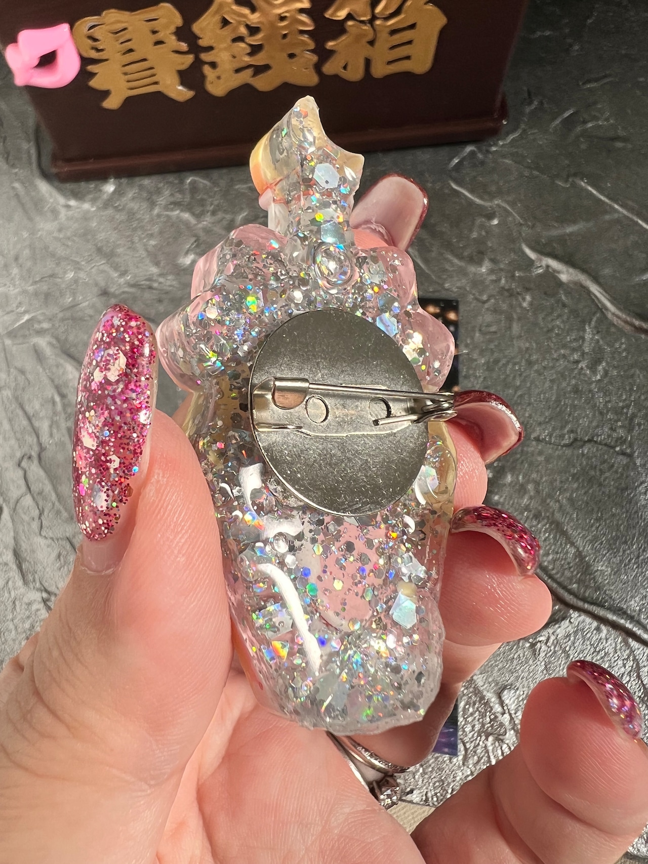 こちらは、レジンに水晶を埋め込んだブローチです♡♡