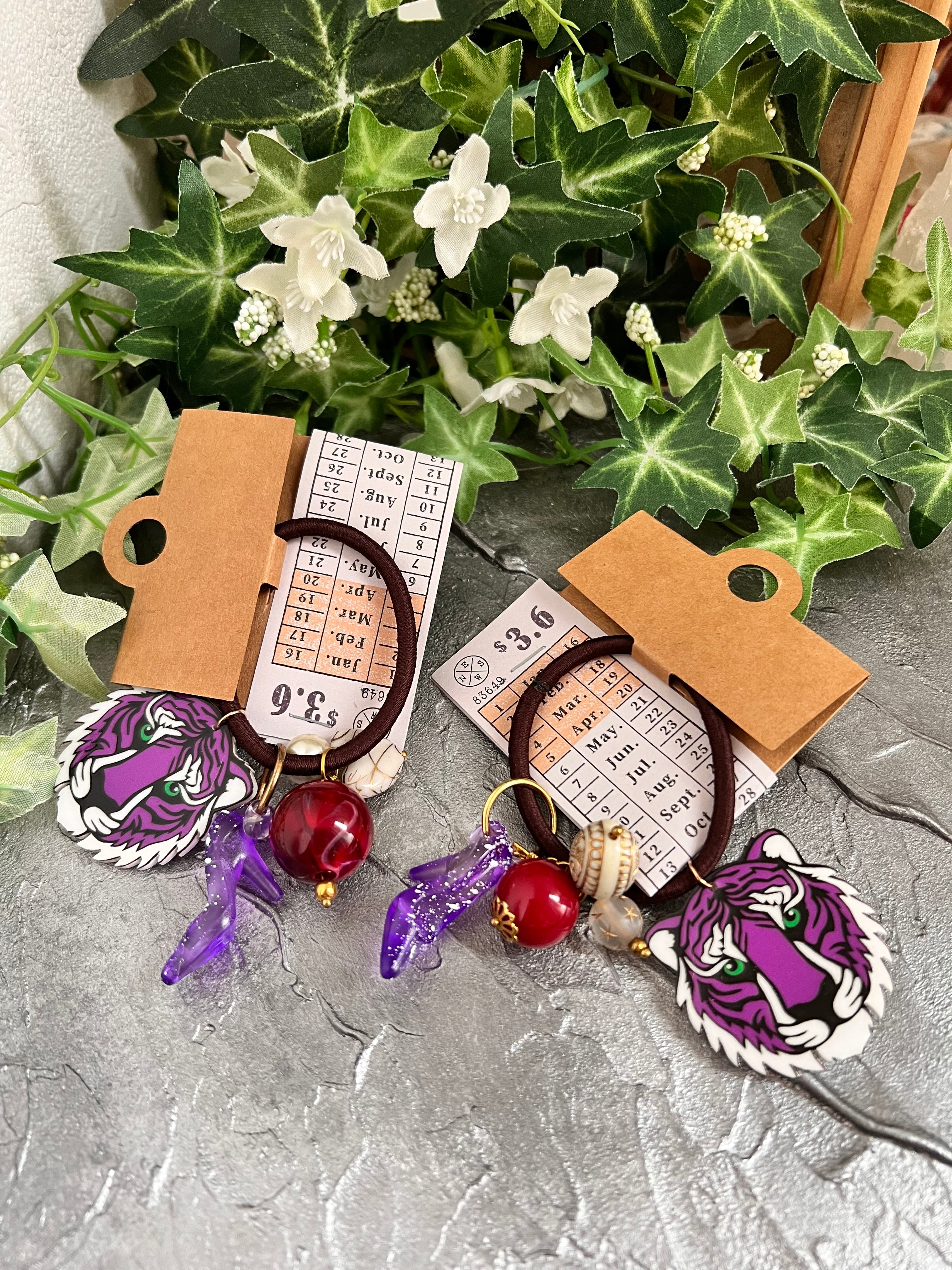 紫のヒールと虎。ヘアゴム