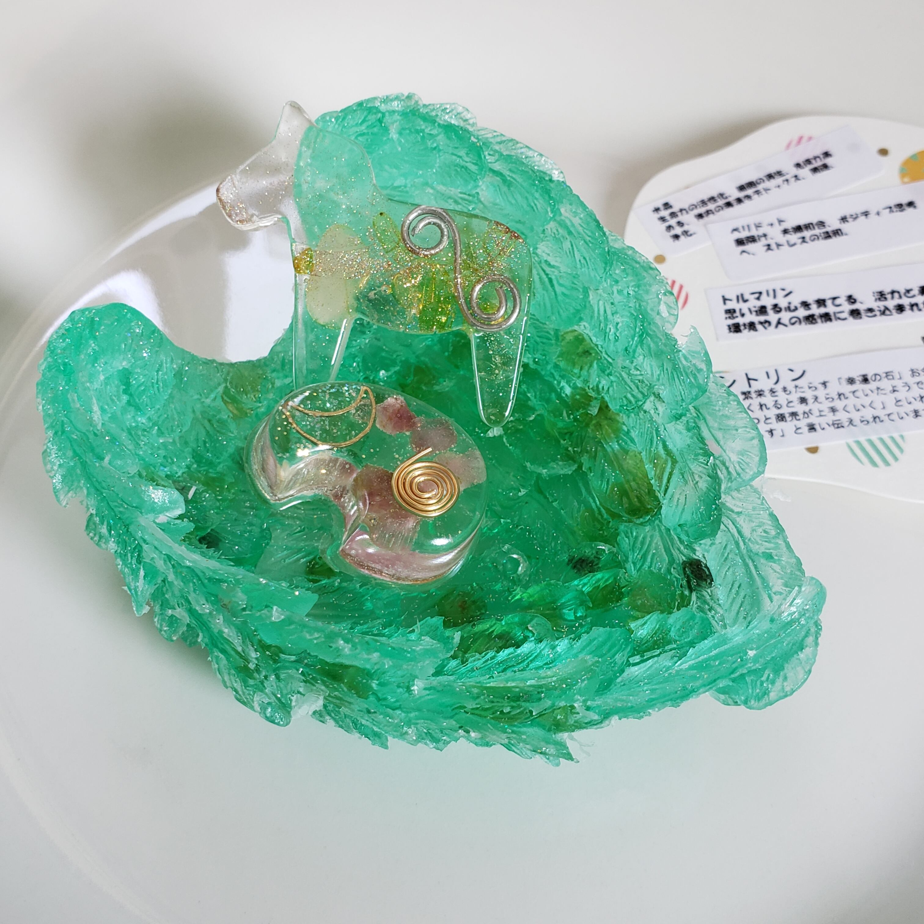 山梨県産水晶とペリドットのアクセサリートレイ♥️