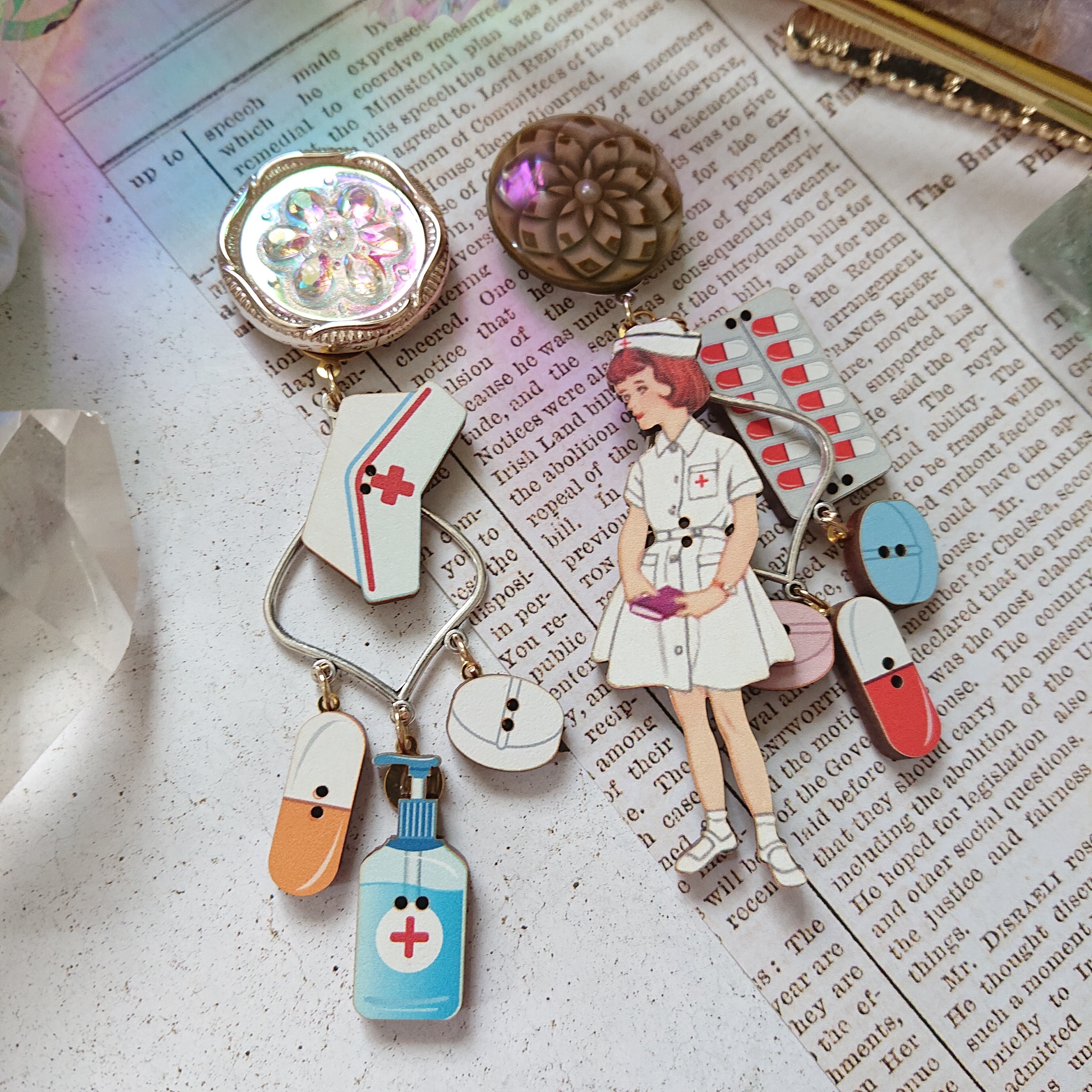 フランス製ウッドボタンと、オリジナルパーツの新作でございます。