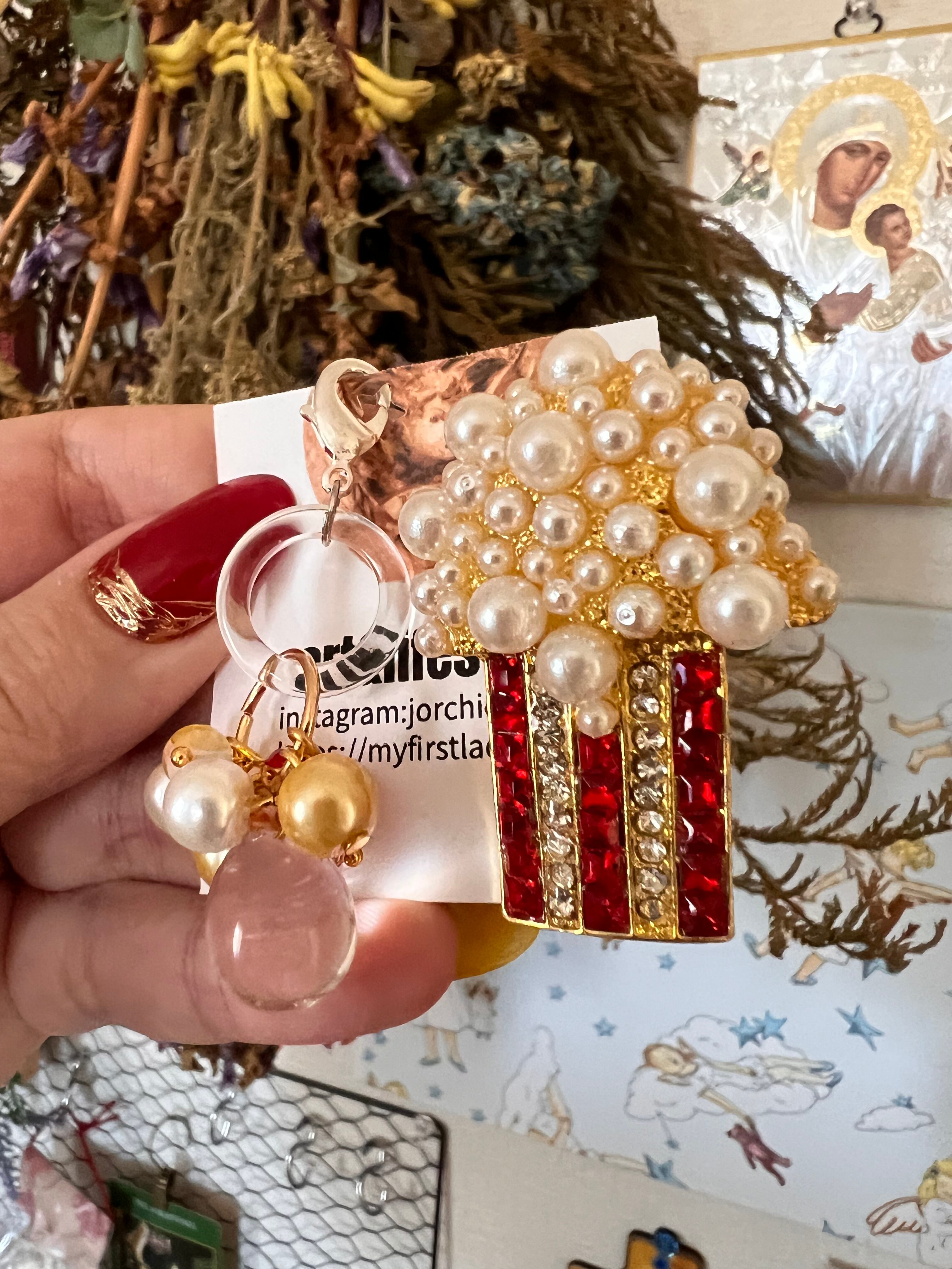 パールポップコーン。ブローチ パール 2way ポップコーン