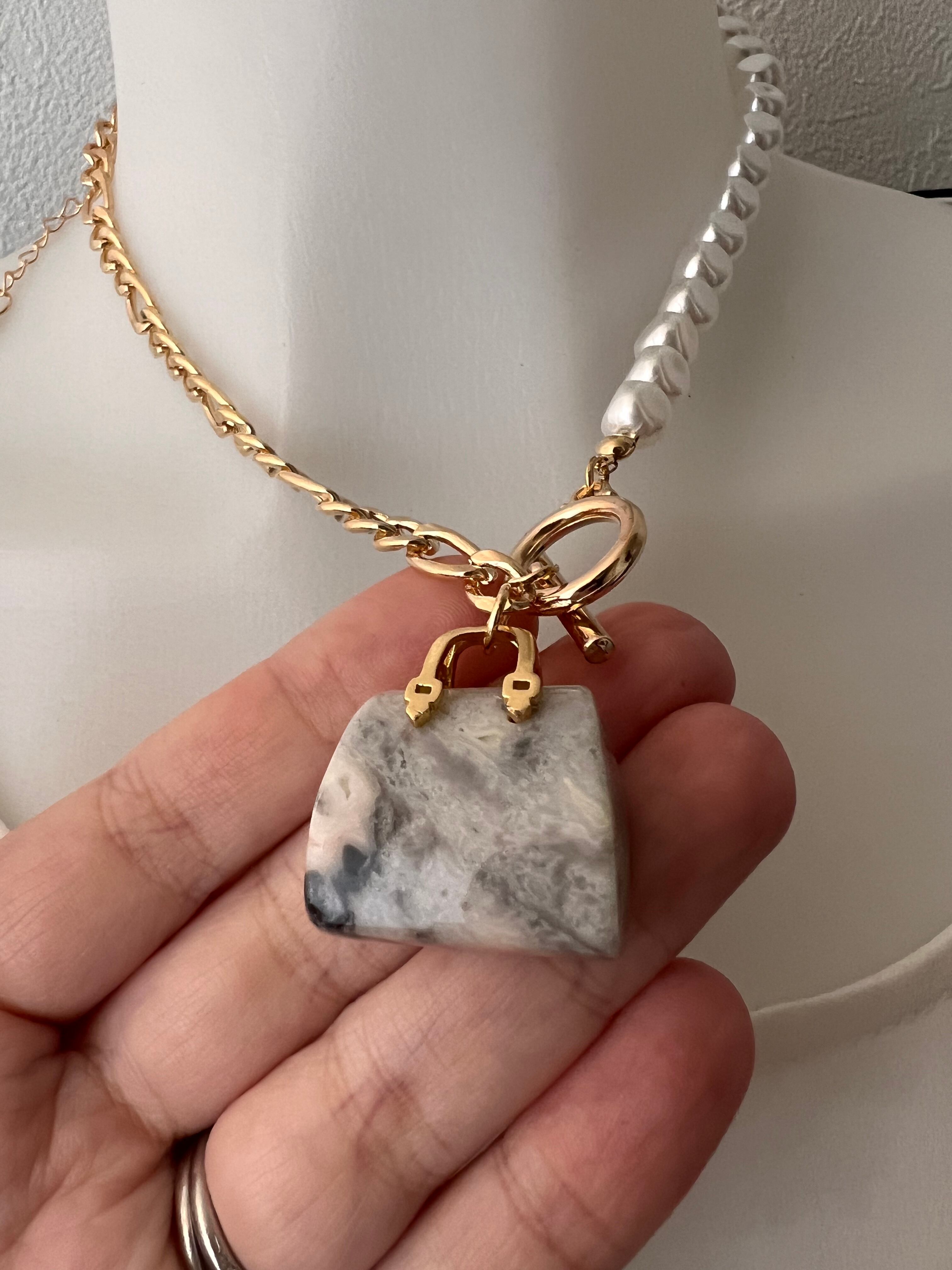 幸運のバッグ。ネックレス アゲート バッグ型 天然石