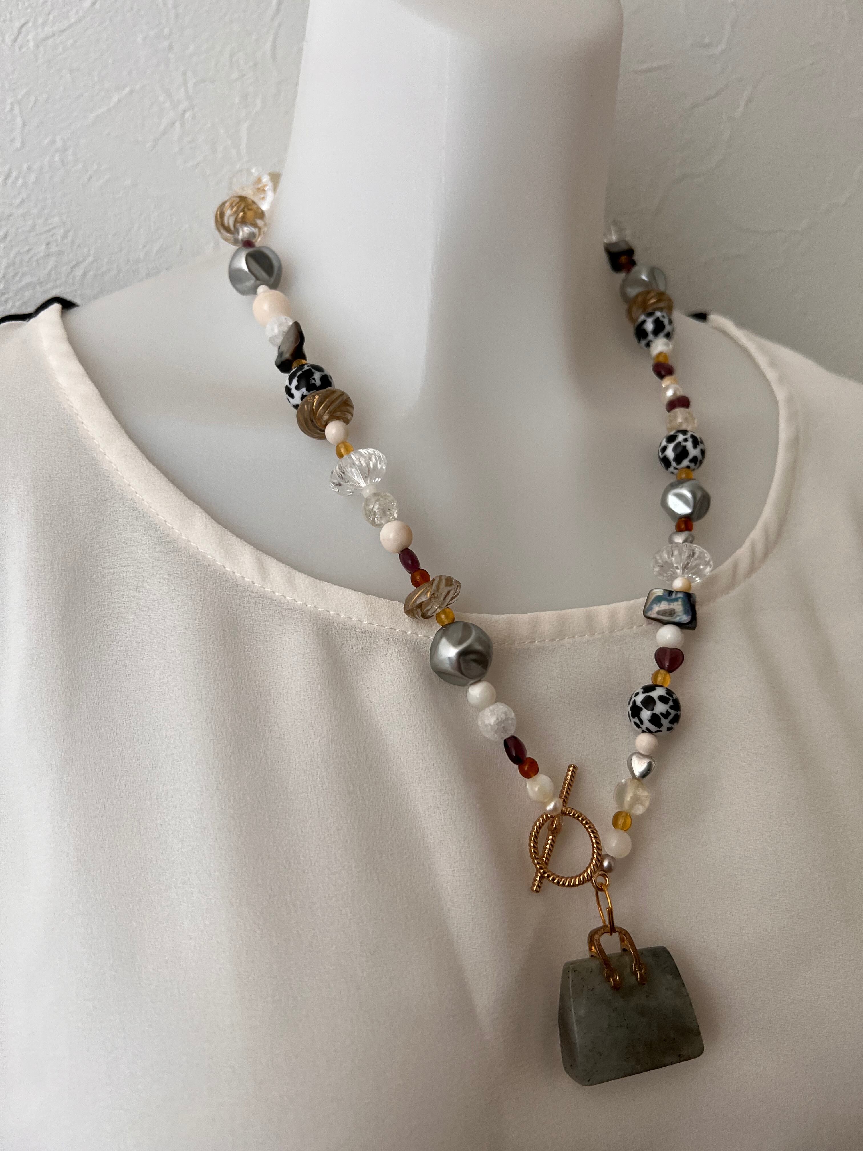幸運のバッグ。ラブラドライト ビンテージ コーラル 水晶