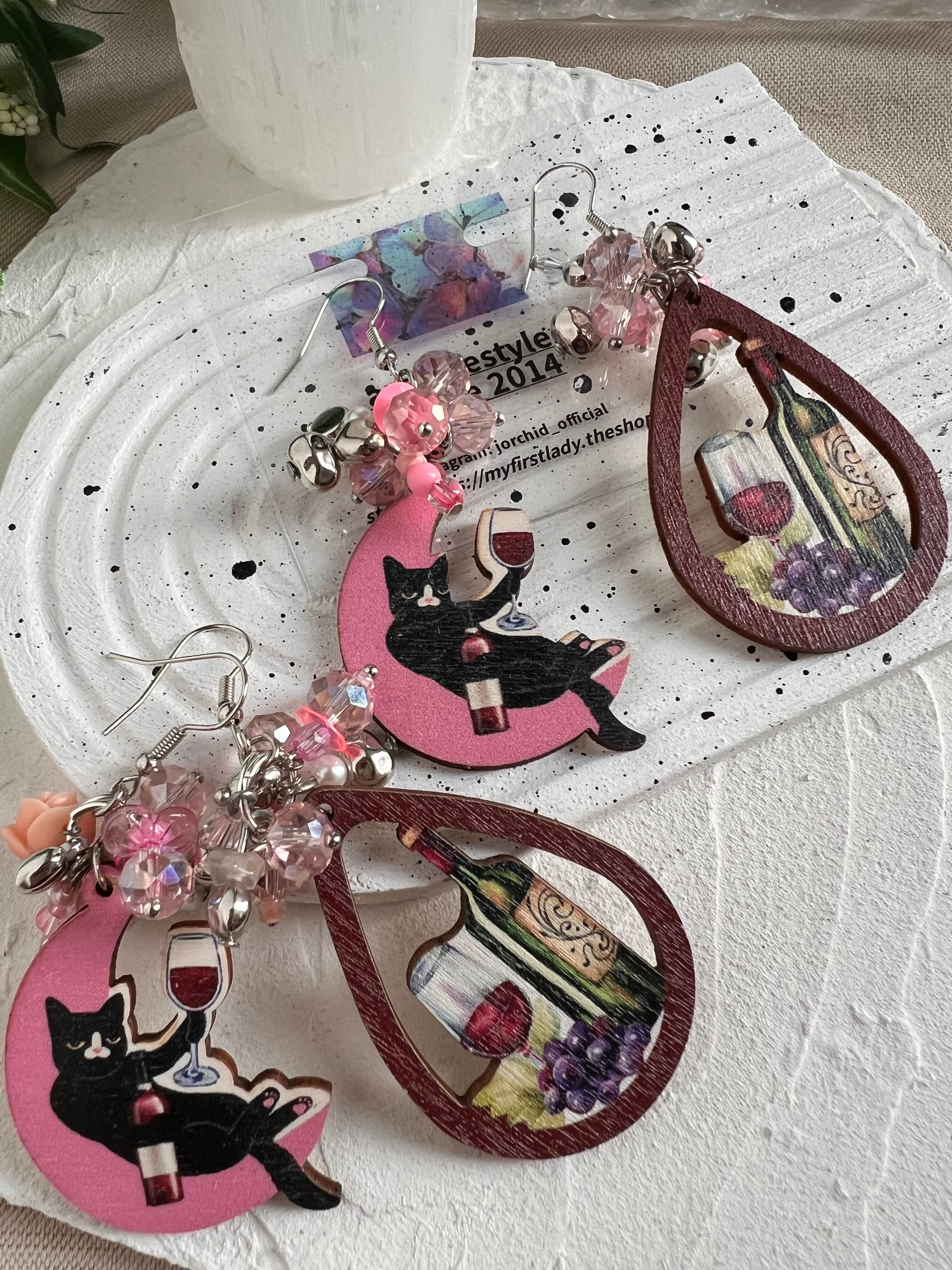 フランス製ウッドチャームで新作ワインを嗜む猫様…(*ΦωΦ)アハァ…♥